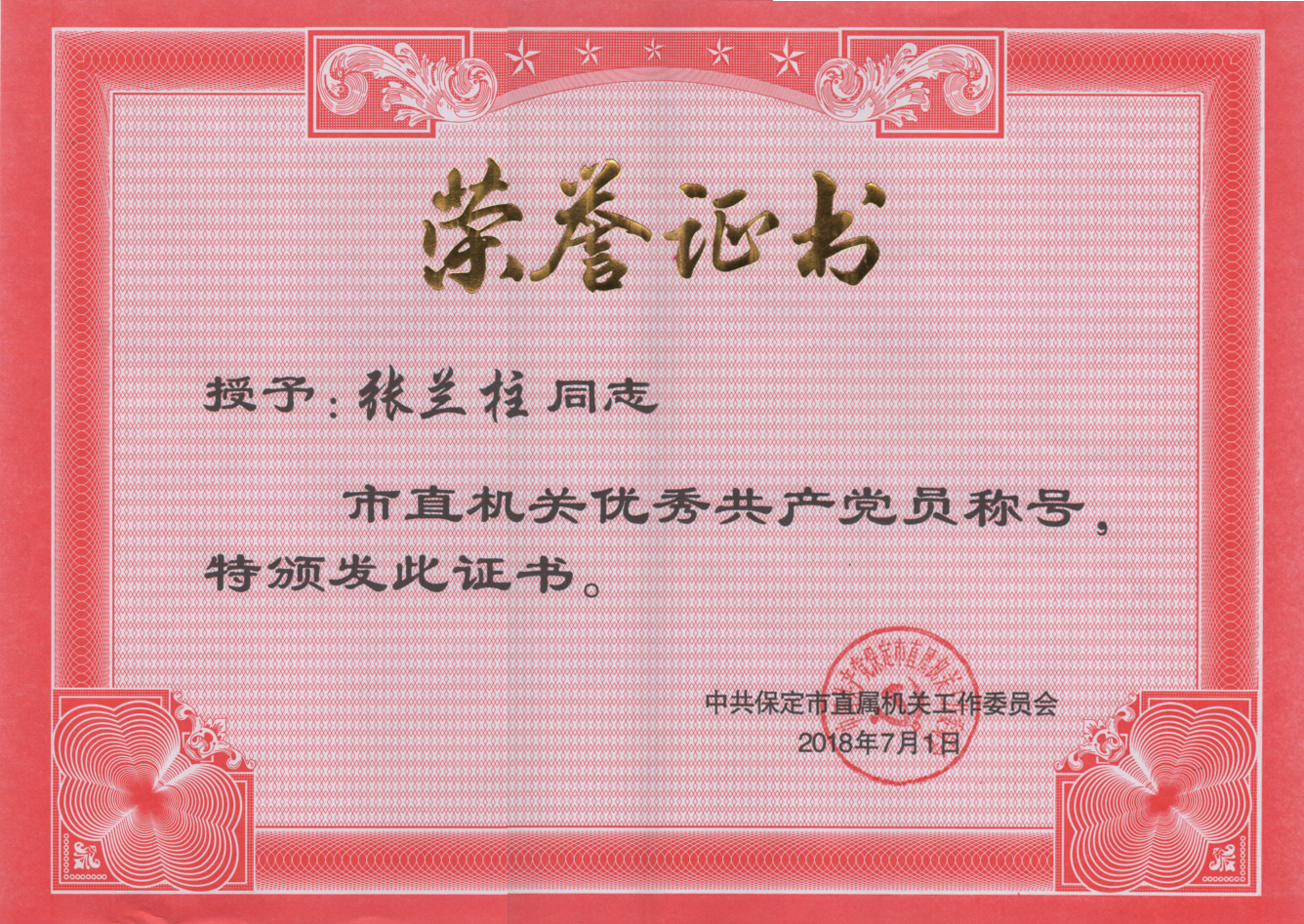 党委书记张兰柱荣获2017年度市直机关优秀共产党员荣誉称号