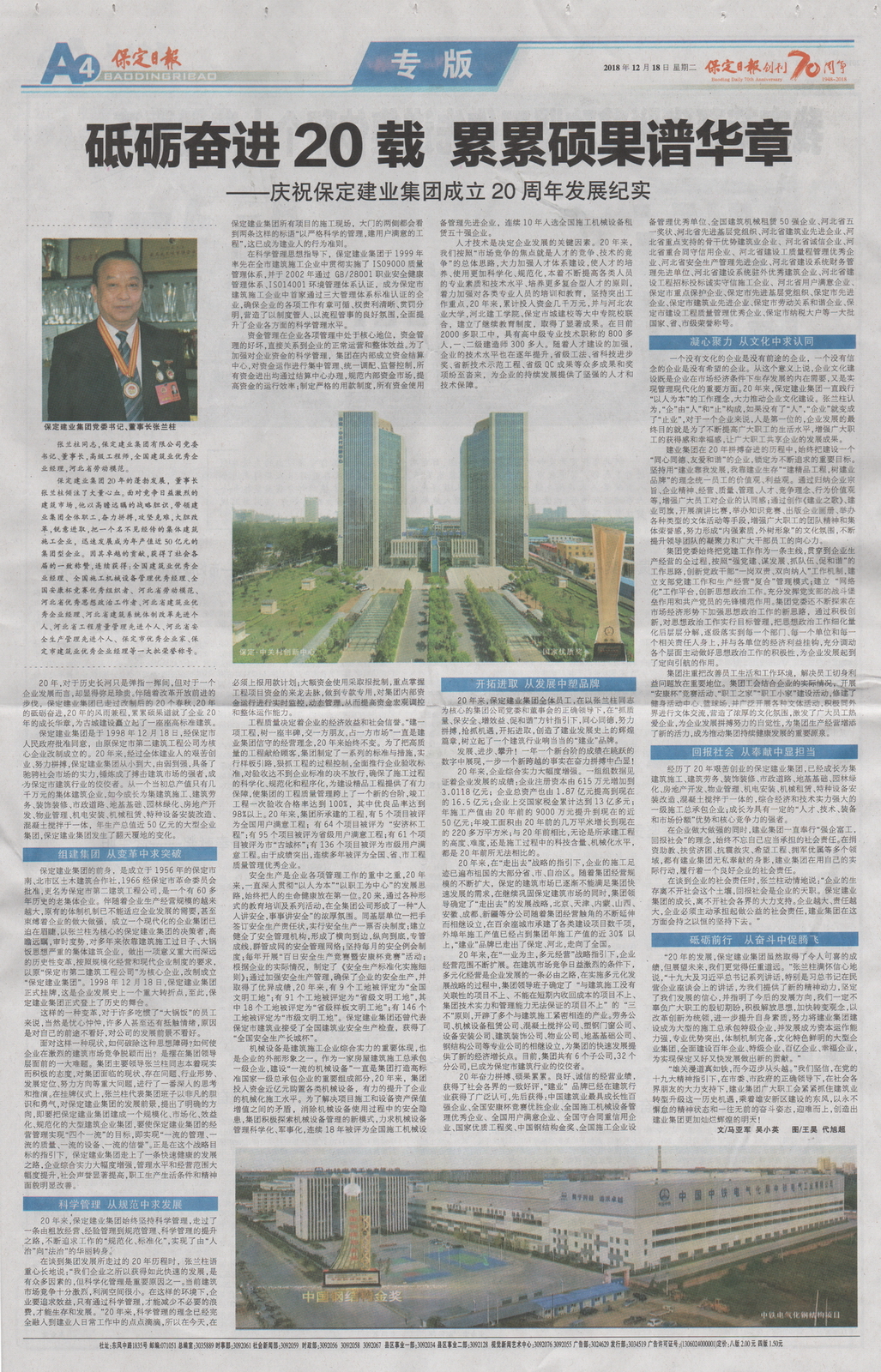 保定日报专版报道半岛(中国)成立二十周年